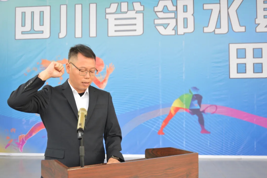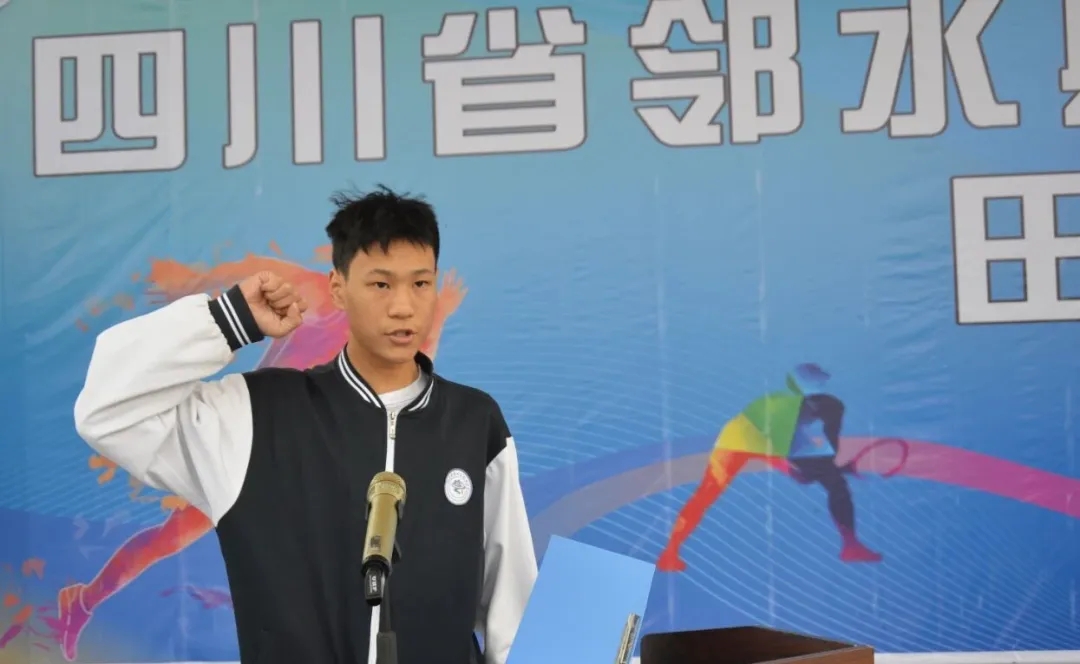 运动员代表2023级运动训练班学生廖翔紧握右拳,庄严宣誓,承诺将严格遵守比赛规则,以饱满的热情和最佳的状态投入比赛,充分展现邻水职中学子的良好风貌。裁判员代表姜伟老师也郑重表示,将恪守职业道德,严格执行比赛规则,确保赛事的顺利进行。