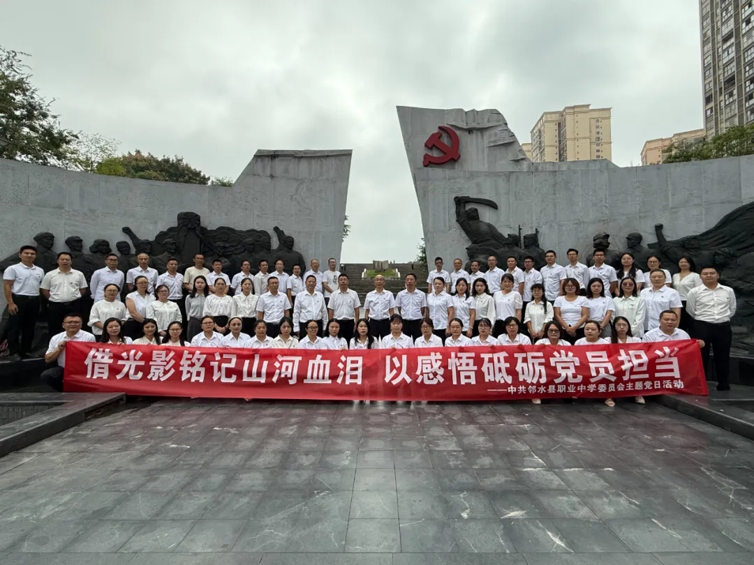 在中国人民抗日战争暨世界反法西斯战争胜利80周年之际,为深入推进党史学习教育常态化长效化,缅怀革命先烈,铭记苦难历史,激发广大党员的爱国热情和担当精神。9月27日,四川省邻水县职业中学以“借光影铭记山河血泪 以感悟砥砺党员担当”为主题,组织全体党员开展了一场浸润着历史厚重感的红色教育活动。