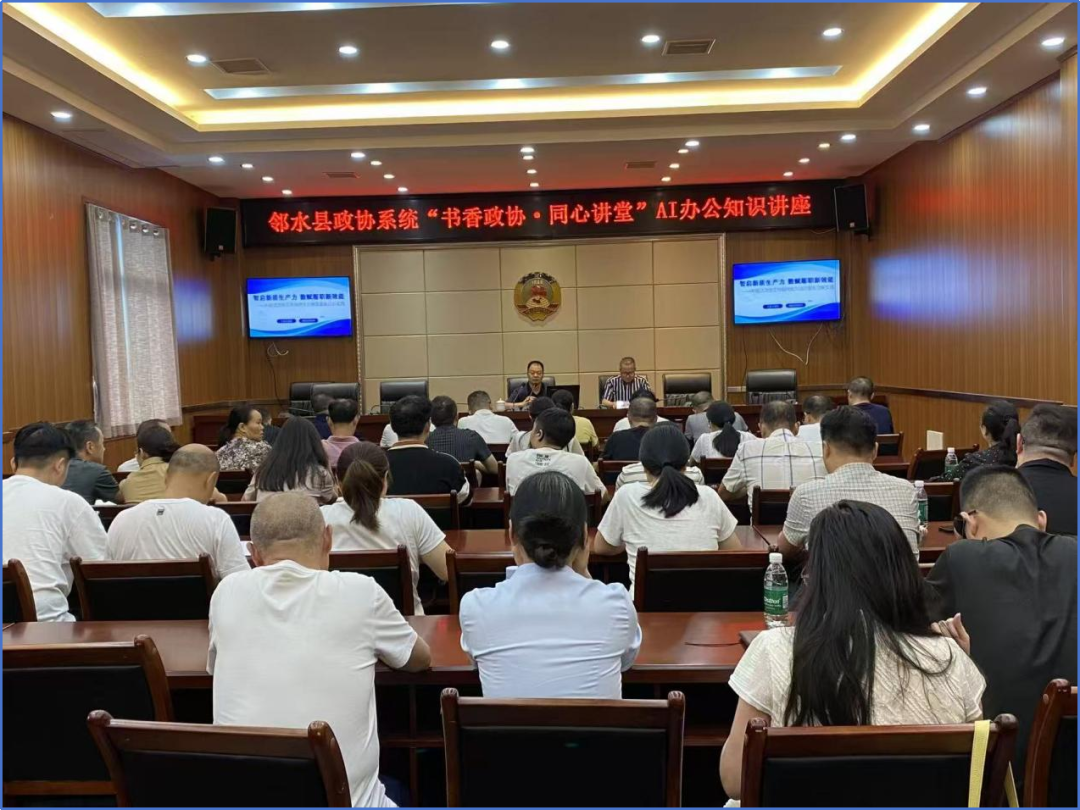 2025年9月17日下午,四川省邻水县职业中学计算机专业高级讲师张润,为邻水县政协系统开展了主题为“智启新质生产力 数赋履职新效能”的专题讲座。县政协机关干部职工和部分县政协委员代表共60人聆听了此次讲座,讲座旨在助力政协工作数字化转型,展现了职业教育服务地方经济社会发展的积极作用。