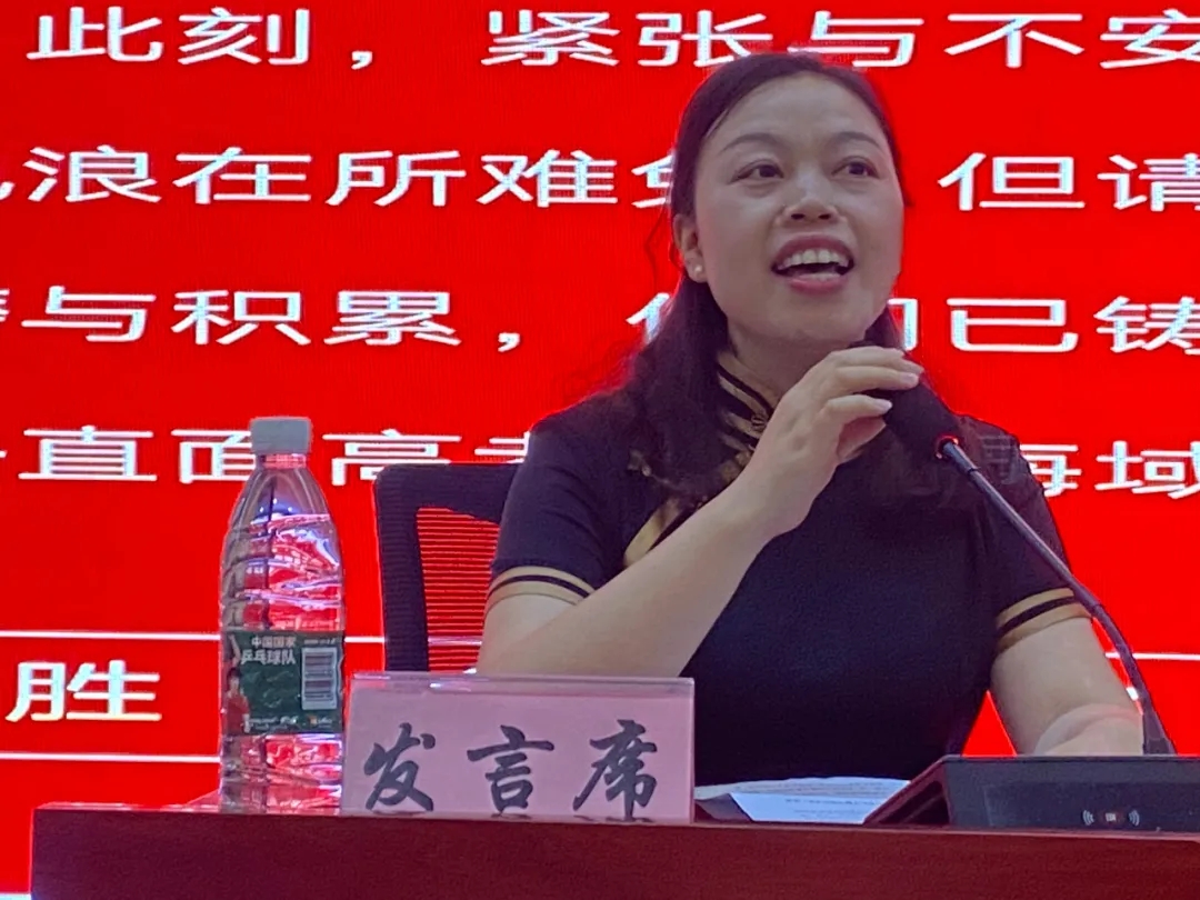邻水职中党委委员、副校长冯仁军发表了振奋人心的讲话。他以“大鹏一日同风起,扶摇直上九万里”激励同学们要有远大抱负和凌云壮志,希望同学们踏上考场,有征战沙场的自信和勇气,去追逐自己的梦想。冯校长的话语如同一盏明灯,照亮了同学们前行的道路,让大家对未来充满了信心和期待。“回顾三年的校园时光,同学们在这里播种希望,收获成长。今天,你们站在了高考的起跑线上,学校全体教师都是你们最坚强的后盾。”
