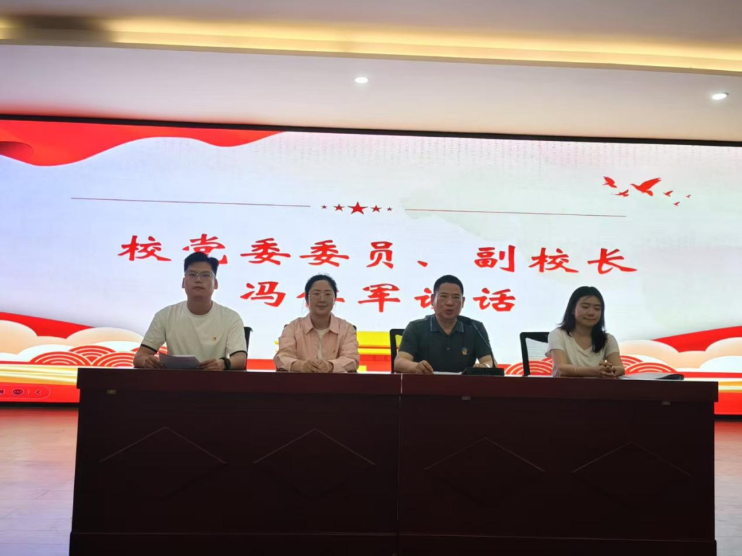 校党委委员、副校长冯仁军在仪式上讲话,对新团员表示祝贺,强调团员责任与担当,鼓励同学们努力学习,成长为社会主义建设者和接班人。