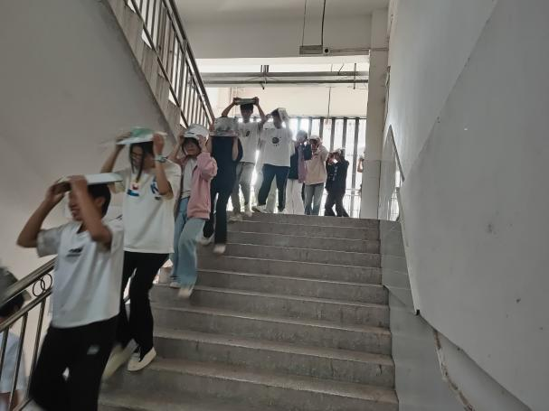 随着一阵促急的警报声响起,演练正式开始。各班教师迅速反应,立即指挥学生们在课桌下就近避险,用书本等物品保护好头部。待第一波“震动”过去,紧接着一阵长哨声响起,标志着紧急疏散开始。各班教师迅速组织学生按照预定的疏散路线,猫着腰、护着头,快速而安静地向操场等开阔安全地带转移。整个疏散过程中,各楼层、各通道负责老师坚守岗位,眼观六路,耳听八方,确保每一个学生安全通过。